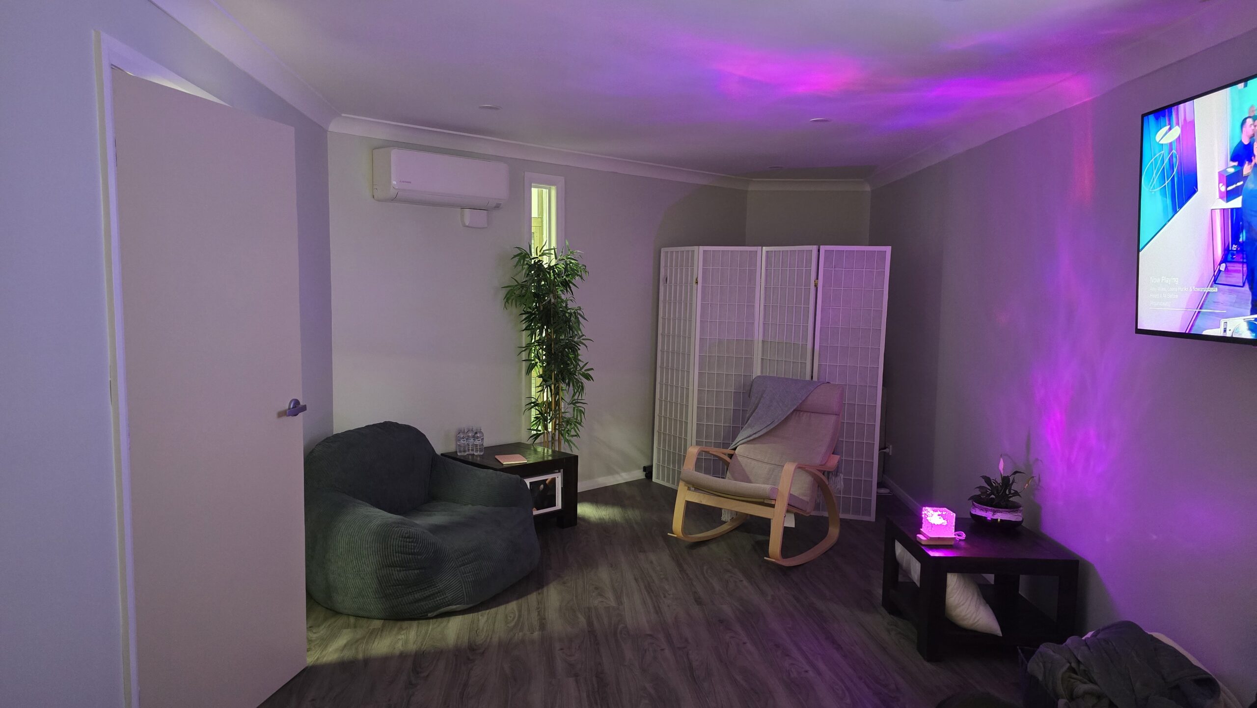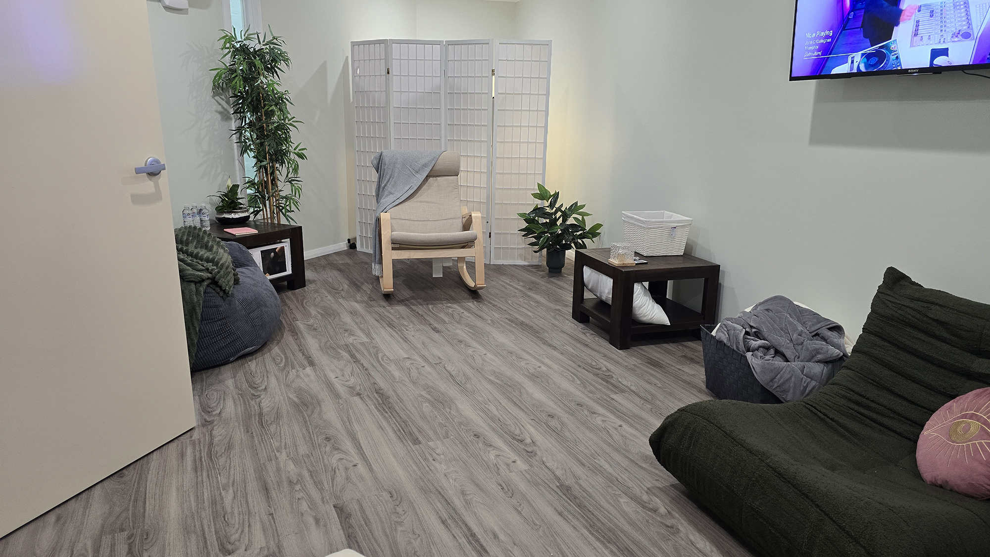 Through quiet, intentional design, soft sensory input, and guided stillness, the environment helps slow the stress response, ease tension, and restore balance. This is a place to pause, breathe, and allow the body to return to a state of calm.